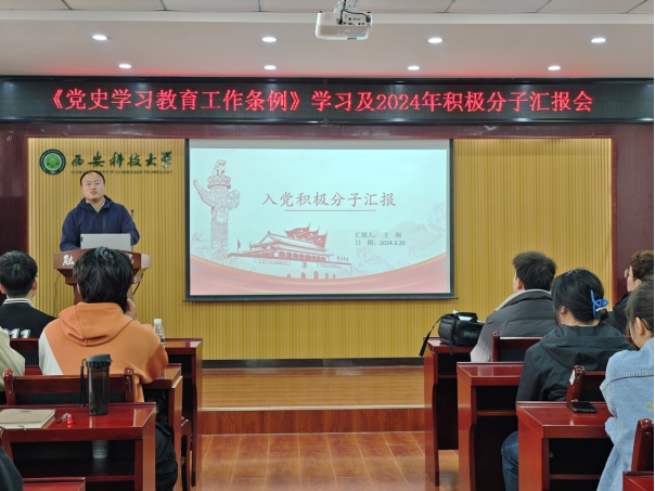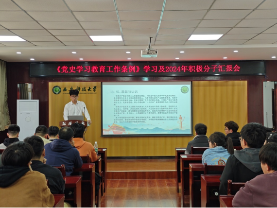 为持续推进党史学习教育,推动党史学习教育工作常态化长效化,更好地开展党员再教育和积极分子培养工作,3月20日,2020级、2021级本科生党支部在临潼校区骊山校园公司会议室举行了《党史学习教育工作条例》学习及2024年积极分子汇报会。全体党员和积极分子参加了会议,会议由支部书记吴蒸主持。