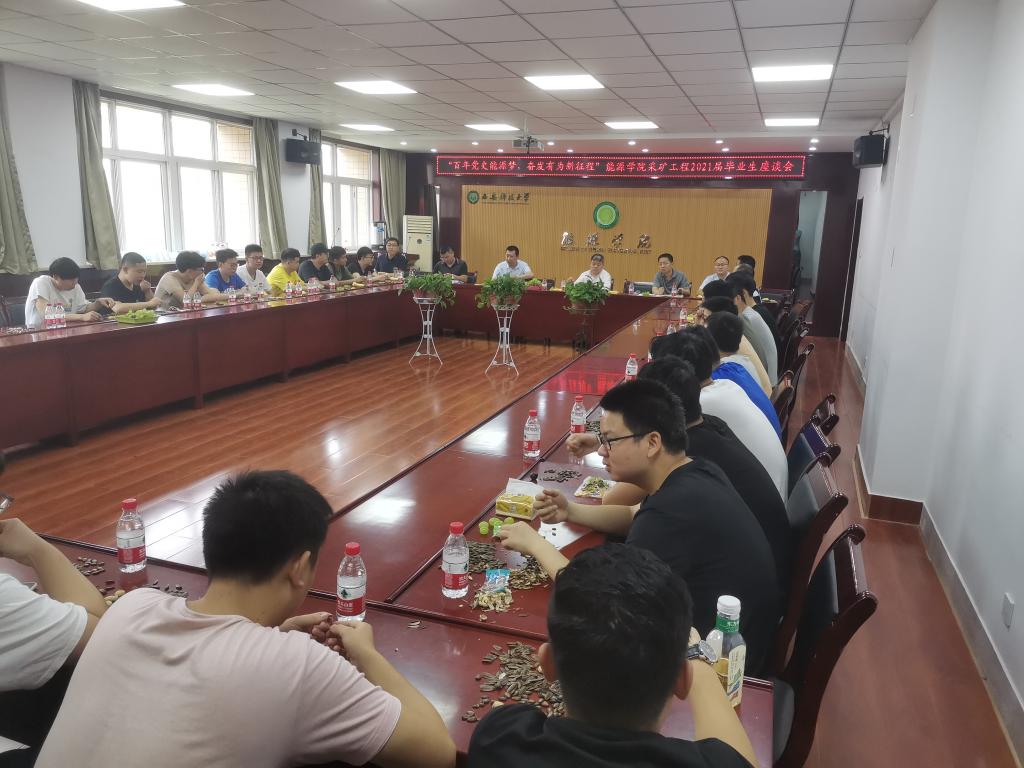6月21日上午,公司在骊山校园14教公司会议室分批次举办了“百年党史能源梦,奋发有为新征程”2021届采矿工程毕业生座谈会,经理柴敬、党委副书记李绥波、副经理解盘石、采矿系副主任孙伟博,教师代表贠东风、毕业班辅导员吴蒸及2021届全体采矿毕业生参加座谈会,会议由采矿系主任丁自伟主持。