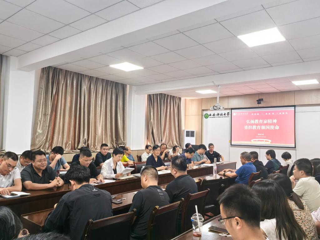 会议学习了《中共中央国务院关于弘扬教育家精神加强新时代高素质专业化教师队伍建设的意见》、《求是》2024年第17期发表的习近平总书记文章:培养德智体美劳全面发展的社会主义建设者和接班人,观看了“老骥伏枥壮志不减 开拓创新引领发展”的中国农业大学教授、中国工程院院士汪懋华老师的先进事迹和“许身高教育英才 矢志油气强国梦”的东北石油大学教授、全国高校黄大年式教师团队负责人吕延防老师的先进事迹。