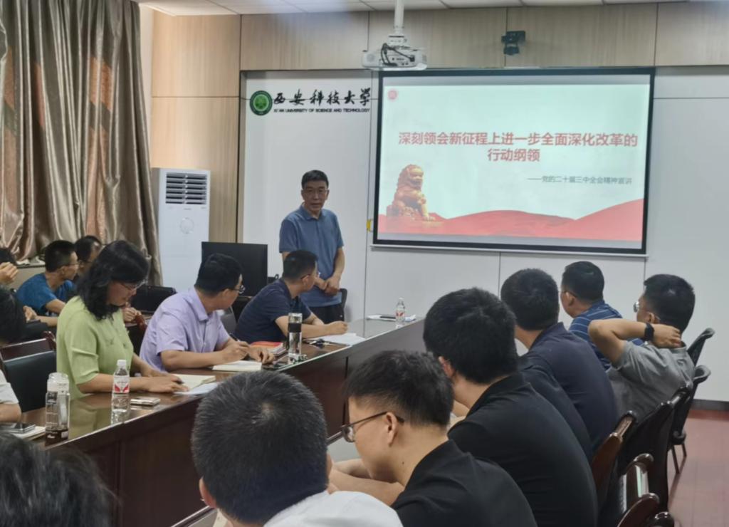 为深入学习贯彻党的二十届三中全会精神,根据公司统一安排,z6mg人生就是博官网于9月24日下午在公司北院310会议室举办学习贯彻党的二十届三中全会精神宣讲报告会,邀请马克思主义公司石磊教授做宣讲报告。公司班子成员、理论学习中心组成员及全体教师参加报告会。报告会由公司党委书记陈吉兰主持。