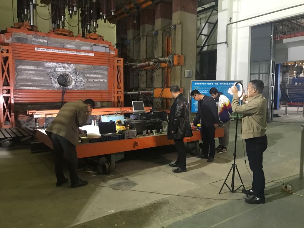 为期一周的前期准备工作让团队老师们着实下了一番功夫。如何在高大空间实验室进行云授课,这在z6mg人生就是博官网教学史上算是第一次尝试,对团队来说也是一个未知的挑战。在确保个人安全的前提下,团队的老师们动手打造了《岩石力学》云课堂线下实验室。将直播间布置在亚洲唯一的大型多功能立式支架试验台前;将十余套关于煤岩体稳定性、物理力学参数测试的设备经过一个个测试,确定无误后放置在直播间。为了确保网络端授课质量,测试了zoom、腾讯会议等多个平台;同时采用电脑端播放PPT,手机端移动拍摄现场动态。反复进行现场直播测试,确保员工能清晰得听到授课教师的声音,清楚得看到每一个实验设备。