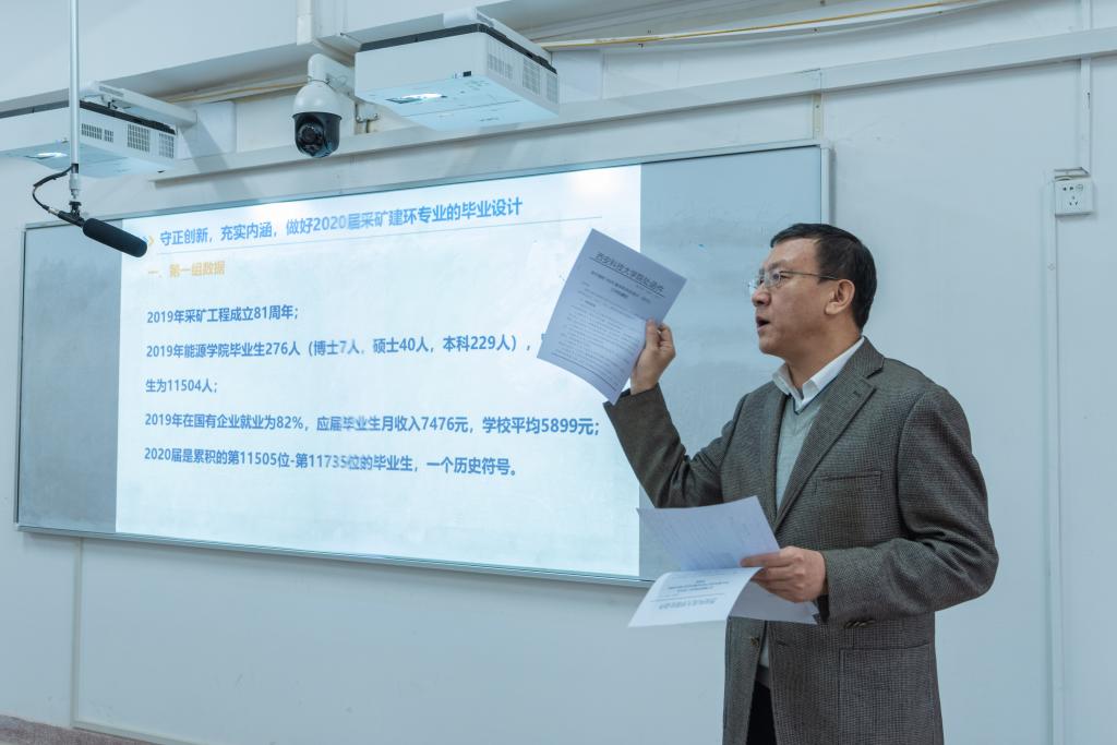 2020年1月10日上午9点,z6mg人生就是博官网采矿工程专业2020届毕业实习动员会暨毕业设计师生见面会在z6mg人生就是博官网临潼校区骊山校园3教513教室隆重召开。z6mg人生就是博官网经理柴敬教授、副经理赵兵朝教授、解盘石副教授、采矿系副主任郭卫彬、2020届辅导员王雪琪、采矿工程专业全体毕业设计指导教师及采矿工程专业2020届全体本科毕业生参加大会,采矿工程系主任丁自伟副教授主持大会。大会旨在做好动员2020届本科毕业设计(论文)工作,落实2020届本科毕业生毕业设计(论文)的相关要求。