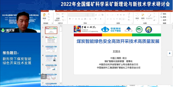 12月17日,全国煤矿科学采矿新理论与新技术学术研讨会通过线上会议直播的方式举办,公司黄庆享教授作为中国煤炭学会开采专业委员会委员受邀参加了本次会议,并担任第一阶段特邀报告的主持人。据悉,中国煤炭学会开采专业委员会自1981年成立以来,坚持举办年度学术研讨会,为广大煤炭科技工作者搭建学术交流平台,产生了广泛的社会影响。本次会议由王国法院士、于斌教授、孙希奎研究院、窦林名教授、梁卫国教授、毛善君教授、张农教授、谭云亮教授、王永强正高级工程师、姚强岭教授、殷帅峰教授等来自16家单位的20位专家、学者,围绕新形势下煤炭智能绿色开采技术发展、特厚煤层智能化综放开采研究及应用、煤矿智能化对安全生产的风险分析及对策、煤矿冲击矿压风险智能判识与监测预警等方向先后作了主题学术报告。