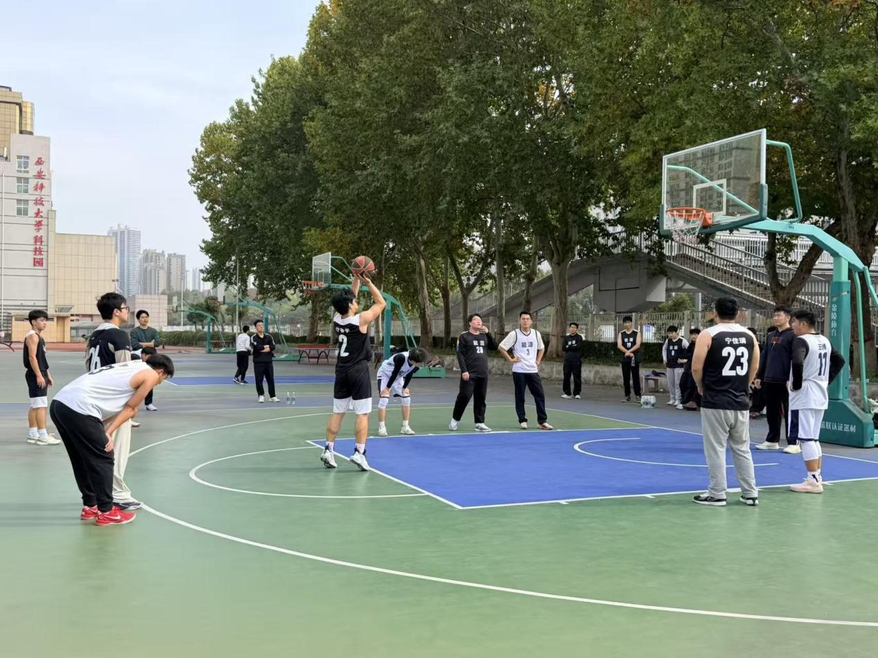 研一、研二、研三与博士联合队三支劲旅同台竞技。赛场上队员们配合默契,攻防切换丝滑,突破上篮、精准远投轮番上演,引得观众阵阵喝彩!各队风格迥异,研一队敢打敢冲冲劲十足,研二队发挥稳定,研三&博士联队稳扎稳打经验丰富。