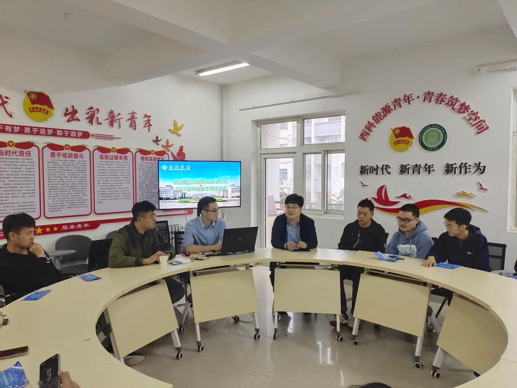 10月9日下午,特变电工天池能源公司校园招聘座谈会在临潼校区8号员工公寓【西科能源青年·青春筑梦空间】举行。特变电工天池能源公司人力资源部招聘经理代鸿涛和南矿生产技术科谢阳阳分别从公司基本情况、招聘需求、福利待遇和员工成长等方面进行了交流。公司学工办主任、团委书记万超与部分2022届采矿工程专业毕业生参加了座谈会。