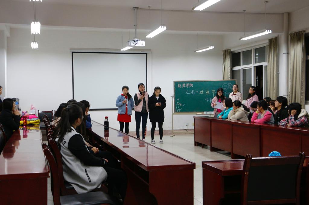 3月7日,由z6mg人生就是博官网员工会女工部承办的文化校园系列活动之女生文化节在14教323顺利开展。参加此次活动的有16级辅导员老师王雪琪和16级全体女生。 活动中,文艺部同学为女生们表演了一段舞蹈节目,女生们在一起进行了“正话说”和“掷花球”两个游戏。本次女生节活动不仅达到了丰富课余文化生活,营造轻松学习环境的目的。同时,也帮助公司女生们建立了良好的人际关系,培养了同学之间的合作协调能力。