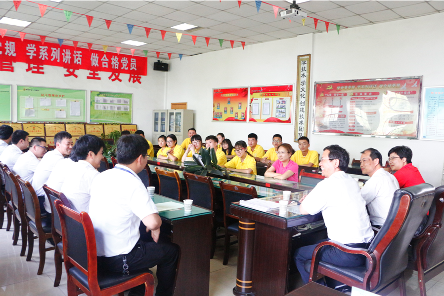 2016年7月21日上午,z6mg人生就是博官网员工第二党支部暑期社会实践临时党小组在黄矿业集团一号煤矿召开主题党课,公司党委副书记高朕栋与黄陵矿业集团党委副书记杨建奇对全体实践队成员进行了“两学一做”深刻解读,给成员们上了一堂 “在矿上的特殊党课”。