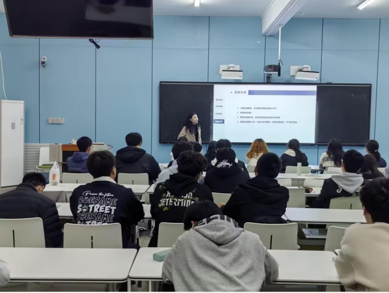 为发扬榜样的示范引领作用,激发同学们的学习热情。10月22日,公司在3教205教室举办了“追光计划”竞赛经验分享会第三讲。本次活动邀请推免到天津大学21级周振杰同学,以“道阻且长,行则将至”为主题,通过分享自身竞赛经验,为同学们献上了一场别出心裁,情谊满满的公开课。辅导员贺平,24级新能源科学与工程专业同学参加了活动。