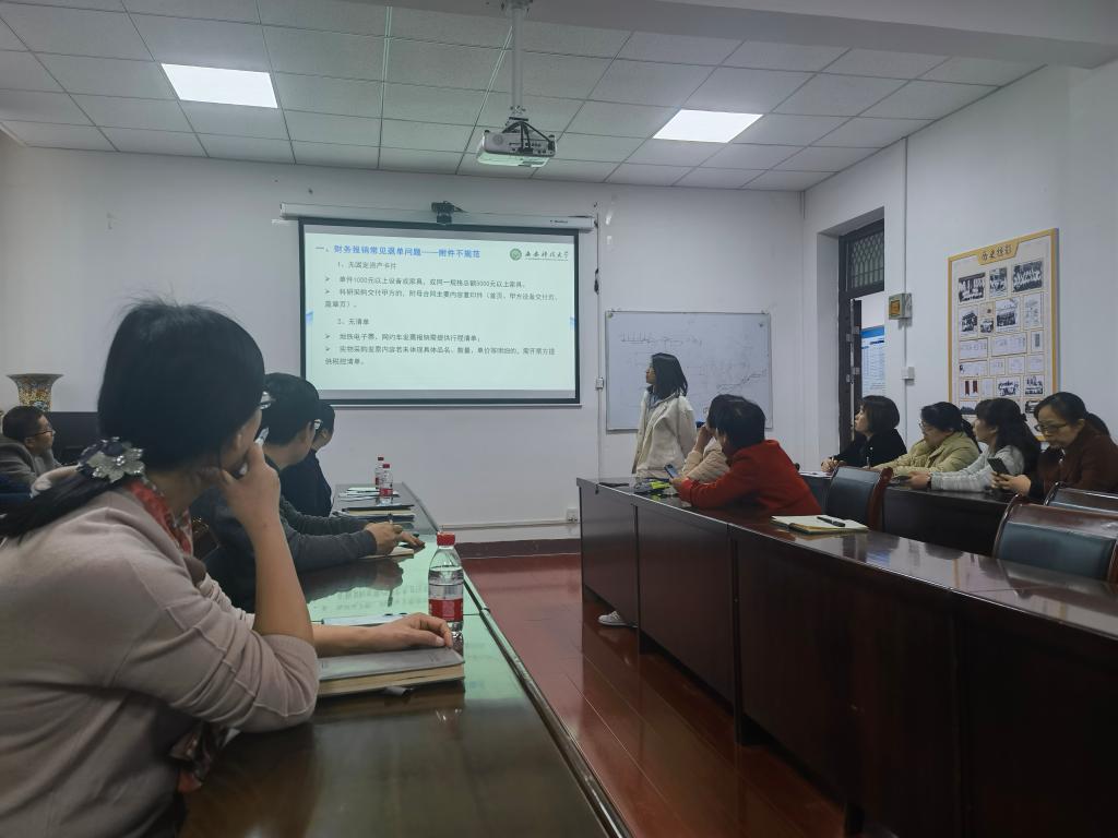 何其恩梳理了日常报账中常见的退单问题并进行了详细的讲解,并就近两年新出台各项财务制度进行了解读,重点围绕科研经费的使用,差旅费、会议费、招待费的报销,以及专利报销材料的准备等方面向各位老师做了讲解和强调。交流环节中,与会老师对经费报销中的细节问题进行了提问,财务处两位老师为大家作了详细的解答。