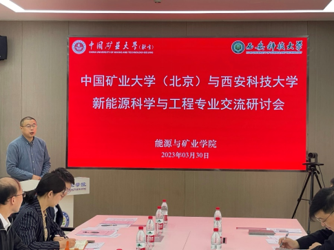 3月30日上午,新能源科学与工程专业交流研讨会在中国矿业大学(北京)公司路校区综合楼318室召开,中国矿业大学(北京)能源与矿业公司党委书记高来举、经理周宏伟、副经理杨胜利,新能源科学与工程系主任郝宪杰及教师代表参加了交流研讨会。会议由高来举主持。