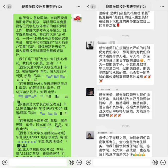 “疫”“研”为定、用心护航。按照公司临潼校区工作组安排,紧急采购了2万只医用外科口罩配发给全体员工;组织全院员工进行了三轮核酸检测;院领导走进员工公寓看望慰问毕业班员工,主持召开校外考研员工专题座谈会,听取考生的现实困难和诉求;根据校外考研员工的考点分布情况,安排专车“点对点、一对一”开展爱心送考,让员工安心、家长放心,用实干和担当践行“我为师生办实事”活动,受到考研员工一致好评。