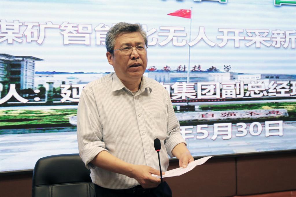 陕西延长石油集团副总经理、国家应急管理部智能化开采技术创新中心主任范京道在骊山校园煤炭科技中心一楼报告厅做了采矿工程智能开采特色班招生宣讲暨“国企领导上讲台”首场报告会。报告会前,范京道为公司图书馆捐赠100本个人专著《智能化无人综采技术》,图书馆负责人接受了捐赠,李明颁发了捐赠证书并致感谢辞,范京道做了《煤矿智能化无人开采新技术》的专题报告。同时对广老员工了提出了“家国情怀、志存高远、刻苦学习、文化修养、强身健魄”20字的殷切希望,希望大家贯彻落实习近平总书记在纪念五四运动100周年大会上的讲话精神,苦练内功,将来在改革开放和现代化建设的伟大实践中施展才华,做出一番感天动地的事业。