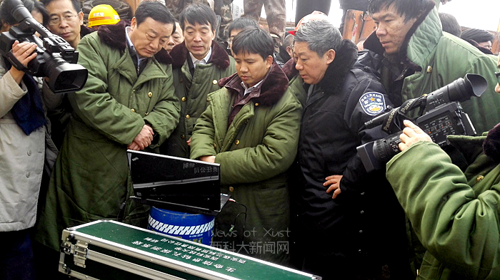 12月30日早10时左右,现场打通了第二个探测钻孔。救援专家组即刻采用“生命信息钻孔探测系统”进行井下被困矿工的搜寻工作。约半小时后,将探测钻杆下放至矿工被困巷道处。成功与井下被困人员取得了联系。通过利用该系统,地面指挥人员清晰地看到了井下被困人员,并与井下被困人员进行了音频沟通。得知井下该处共有被困矿工8人,生命体征良好,急需食物、水和矿灯。