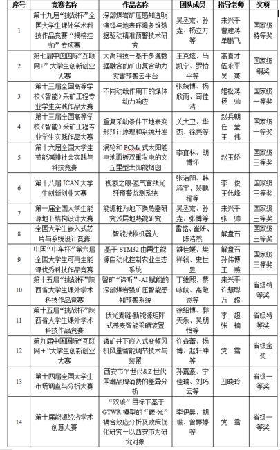 (4)精耕细作竞赛培育。建立完善的竞赛项目孵化流程,定期举办采矿工程专业实践作品大赛、环境控制与节能创新大赛、可再生能源优秀科技作品大赛等项目评审会;邀请校内外知名专家对重点项目进行多轮次、针对性打磨指导,显著提升作品竞争力。