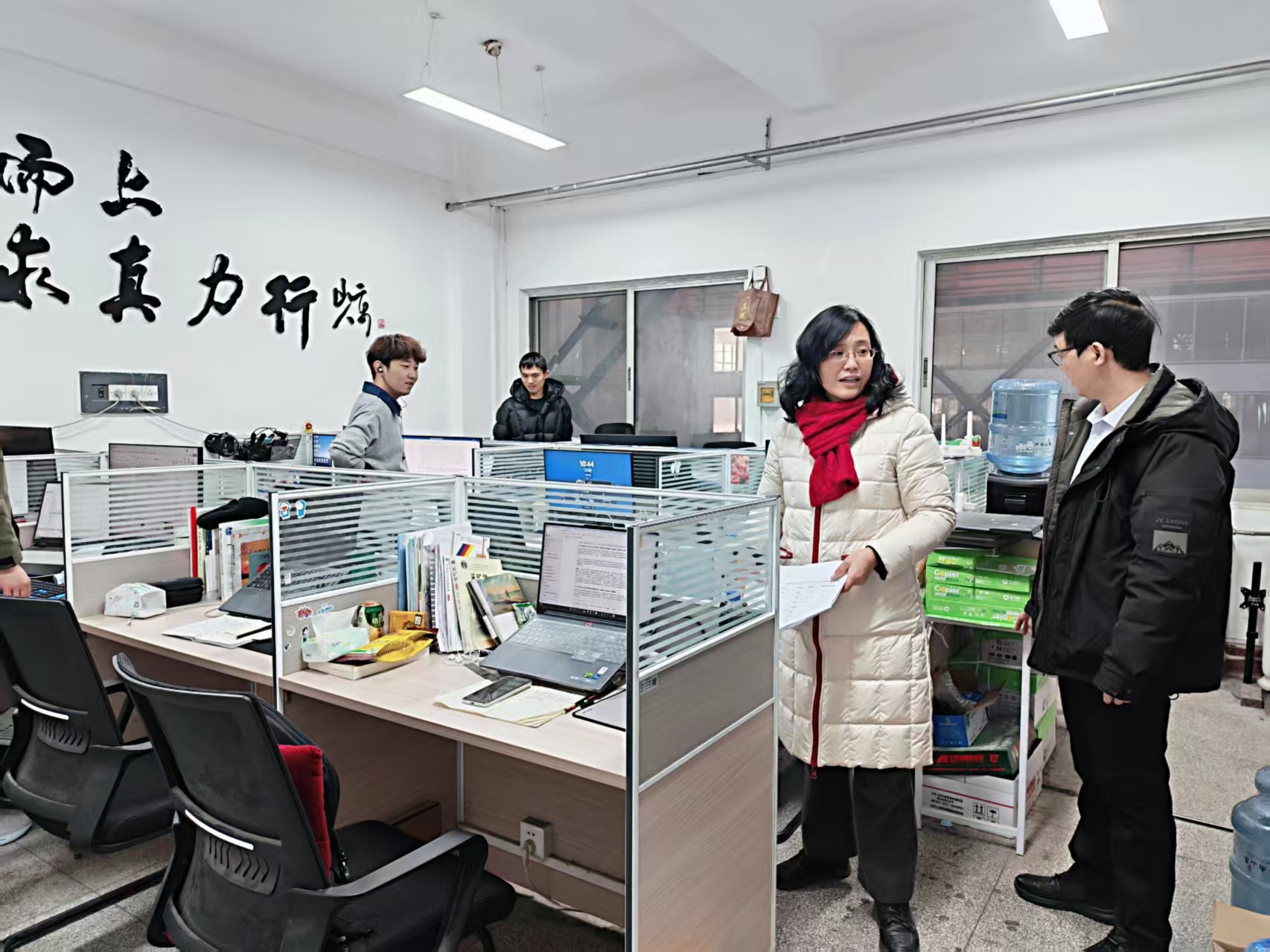 为切实做好寒假期间校园安全稳定工作,消除各类安全隐患,2026年1月15日下午,公司开展了寒假前安全大检查。公司党委书记陈吉兰、副经理朱明带领实验室安全员张艳丽及办公室相关人员,对公司雁塔校区所有实验室和导师工作室的消防安全进行了全面、细致的实地检查。
